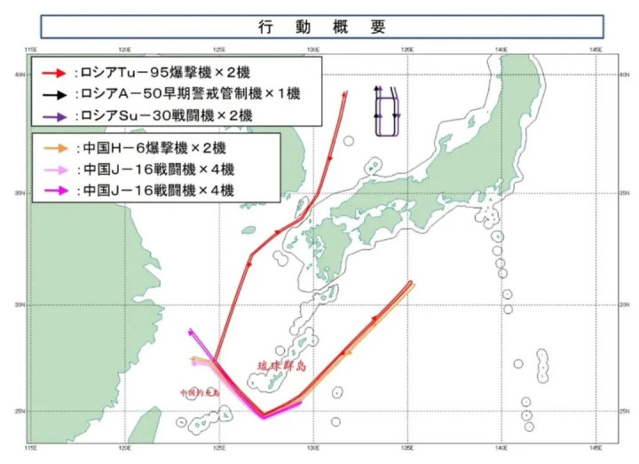 最让日本感到窒息的是,这支编队并没有浅尝辄止,而是 一路北上,越过北纬30°线,直抵日本四国岛以东空域!这是中俄轰炸机 首次 抵达这一区域,距离东京仅有约700公里。